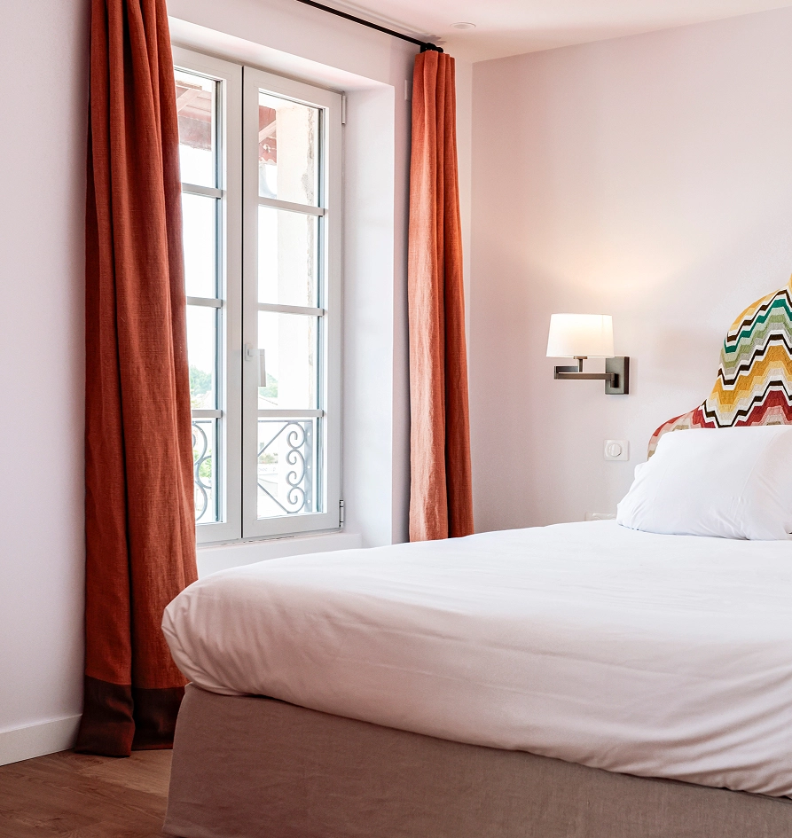Les Chambres Doubles accueillent confortablement deux personnes dans une atmosphère chaleureuse et intimiste. Elles disposent d’une salle de bains contemporaine avec douche à l’italienne et produits biologiques Petit Roseau, de rideaux occultant et d’une décoration élégante, idéale pour une parenthèse à deux.