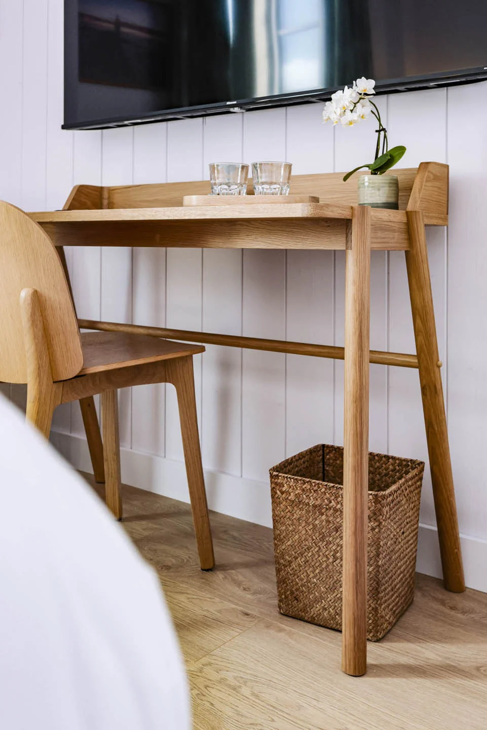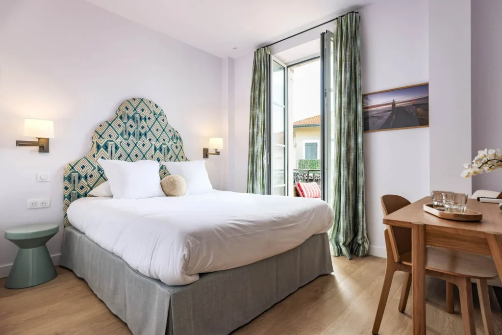 Avec son balcon emblématique et son ambiance délicatement soignée, cette chambre offre une expérience plus vivante et plus ouverte sur Capbreton. C’est l’adresse idéale pour celles et ceux qui aiment sentir la ville, admirer la lumière du Sud et profiter d’un séjour à deux dans un cadre chaleureux.